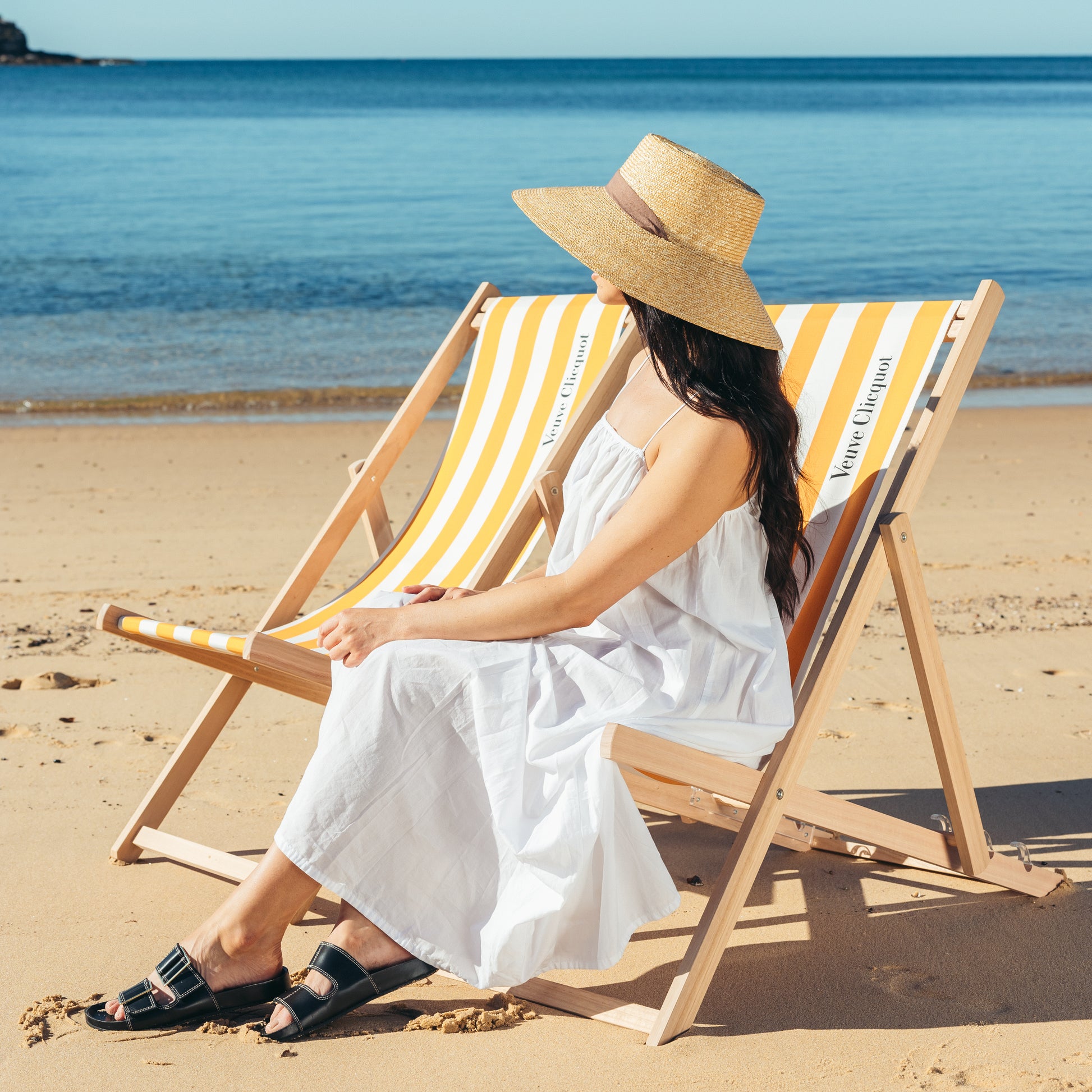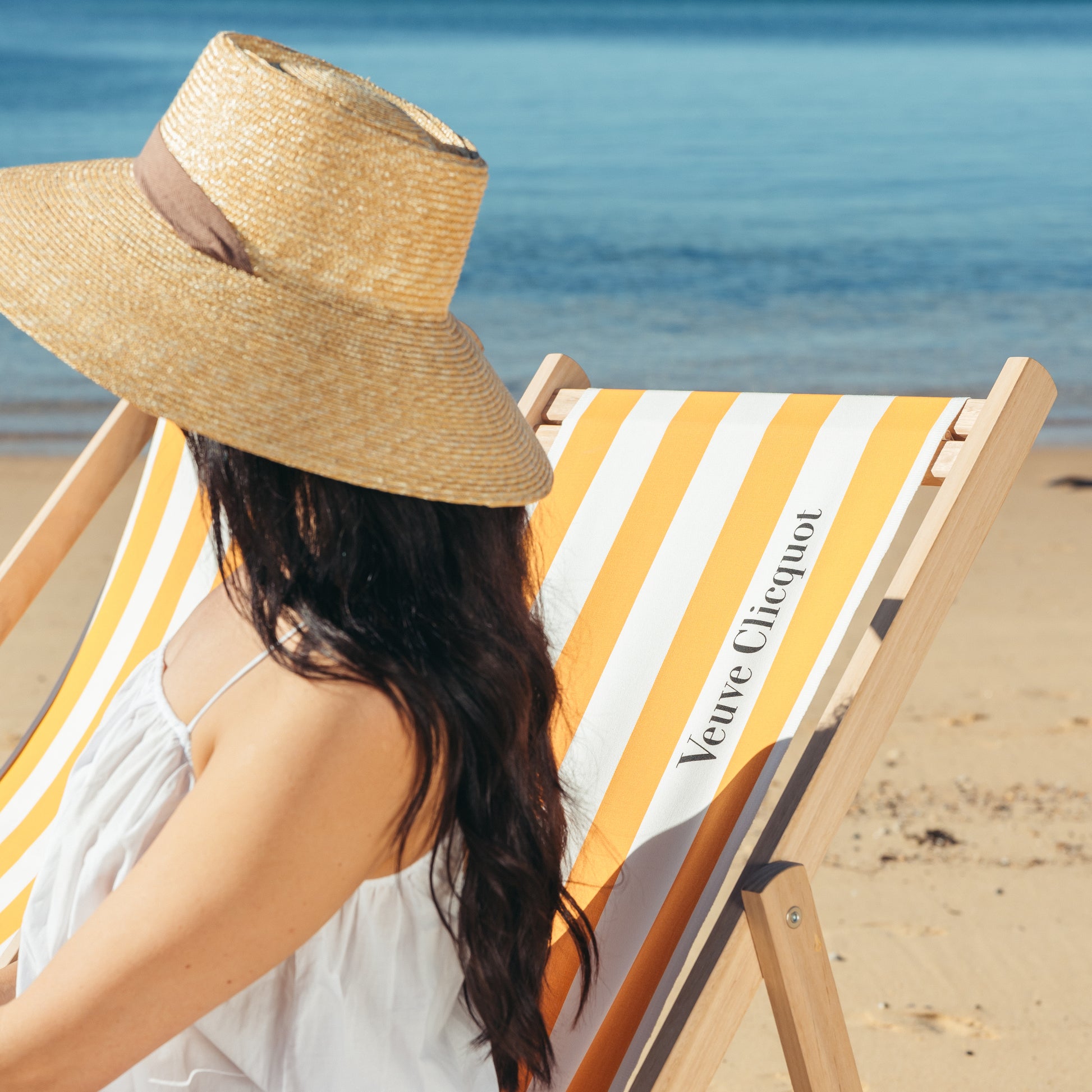 You’ll be transported to the French Riviera with this chic yellow and white striped Veuve Clicquot deckchair.